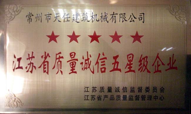 江蘇省質(zhì)量誠信五星級企業(yè)